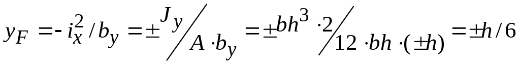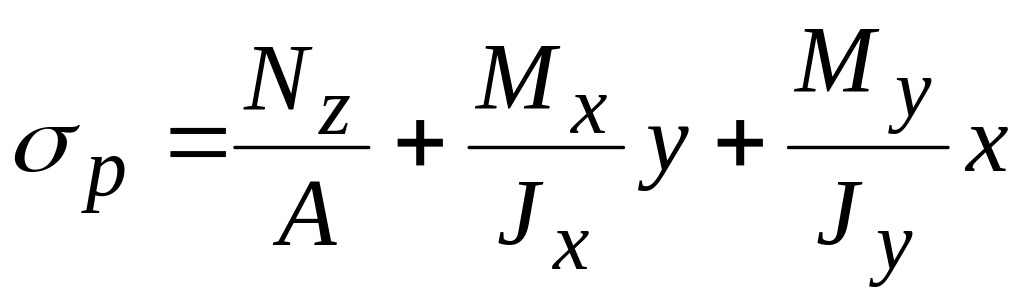 Для этого определяем положение нейтральной линии по отрезкам, отсекаемым ею на осях х, у.