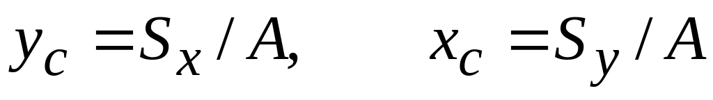 Положение центра тяжести площади сечения определяется по формулам