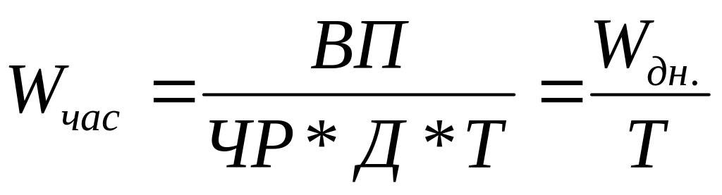 ВП – выпуск продукции (выручка) ЧР – численность рабочих Д – число отработанных дней одним рабочим Т – средняя продолжительность смены, час.