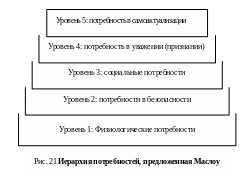 Теория научения тесно связана с изучением мотивации: многое из того, что побуждает нас к действию, покоится на фундаменте предшествующего научения. Например, успешное решение какой-либо производственной задачи, даже если мы добились его ненамеренно или случайно, предрасположит нас к стремлению снова выполнить эту задачу. И наоборот, неудача при выполнении задания или неблагоприятный опыт в процессе его выполнения отвратят нас от желания еще раз взяться за него. Если провал вызван тем, что мы не может повлиять на результат, независимо от того, какие усилия или стратегии мы применяем, мы вынесем из этого опыта чувство беспомощности и в некоторых случаях даже начнем испытывать стресс (Seligman, 1975). И хотя на практике не представляется возможным отделить мотивацию в профессиональной деятельности от мотивации в общественной и частной жизни, некоторые значимые исследования были осуществлены в этой области за последнее время. Наиболее известной в этом направлении является работа Маслоу.