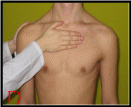 перкутируют сверху вниз, отступя на 1 см кнаружи от левого края грудины