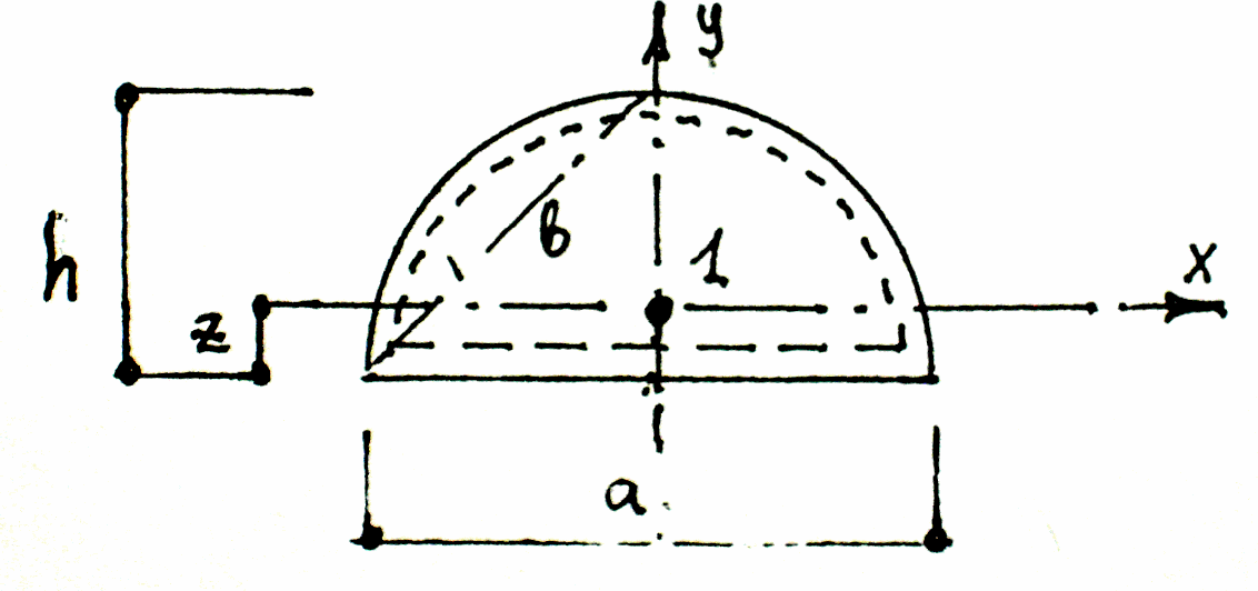 Aсегмента = h / 15 ∙(6a+8b) = 0,392∙a²; Ζ=0,2122∙a;