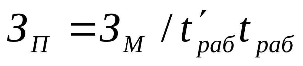 Заработок рабочего при простой повременной системе Зп рассчитывается как произведение часовой (дневной) тарифной ставки рабочего данного разряда ЗЧ, (в руб.) на отработанное время в данном периоде tраб (соответственно в часах или рабочих днях), т.е.: