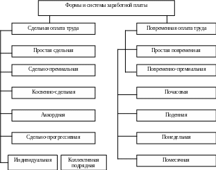 Наиболее распространены на предприятиях различных форм собственности две формы оплаты труда: сдельная — оплата за каждую единицу продукции или выполненный объем работ и повременная — оплата за отработанное время, но не календарное, а рабочее, нормативное, которое регулируется законом. И сдельную и повременную формы оплаты труда можно представить как системы (рис. 16).