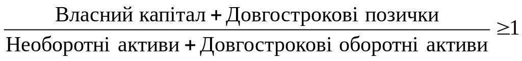 б) довгострокові капіталовкладення повинні фінансуватися за рахунок коштів, мобілізованих на довгостроковий період, тобто довгострокові пасиви повинні використовуватися не тільки для фінансування необоротних активів, а й для довгострокових оборотних активів (наприклад, оборотні засоби, авансовані в стратегічні запаси сировини, неліквідні товари тощо):