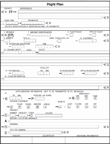 При заполнении бланка плана полета необходимо строго придерживаться предписанных форматов и методов обозначения данных. Буквенная информация вносится печатными буквами латинского алфавита. Информация вносится в первое предусмотренное пространство. При наличии дополнительного пространства оставлять незаполненные места бланка чистыми.
