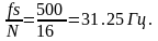Предположим, что синусоида с частотой 8000 Гц., амплитуда которой равна единице, дискретизирована с частотой =32000 отсчетов/с.. Если вычислить 32-точечное ДПФ этой последовательности, то разрешение по частоте или интервал между бинами составит =32000/32=1000 Гц. Можно предсказать, что все частоты от 1000 Гц. до 32000 Гц. с дискретностью 1000 гц. будут определяться точно. Эффект растекания спектра для этих частот будет отсуствовать. Все частоты не попадающие в указанную сетку будут испытывать эффект растекания спектра, определяемый выражением(11).