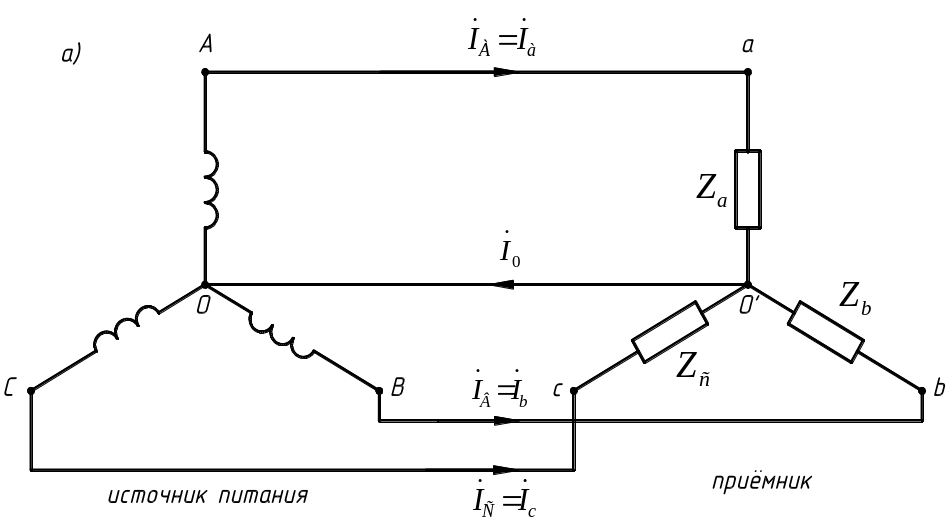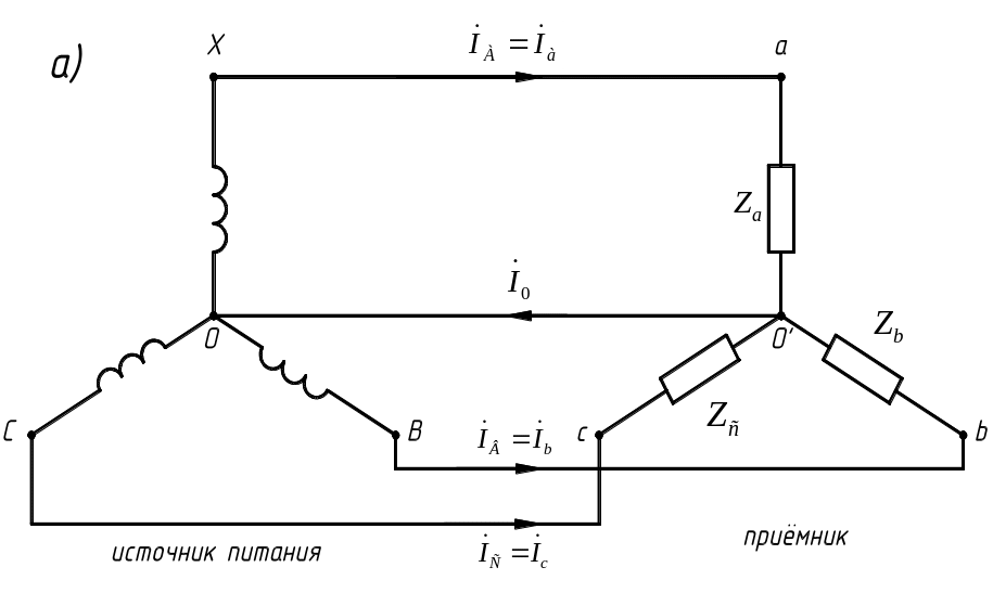 § 3. Четырёхпроводная цепь при соединении приёмника звездой