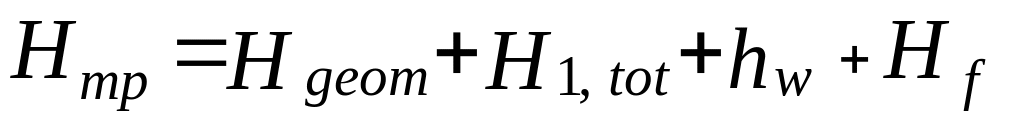 Геометрическую высоту подъема воды подсчитывают по формуле: