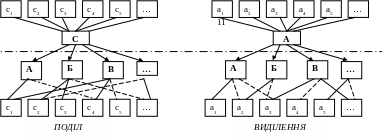 Рис. 11.3. Відмінності між поділом та виділенням підприємств