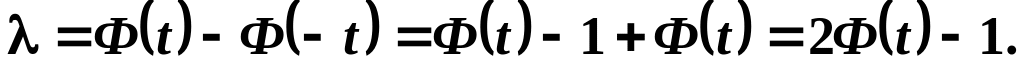 и учитывая, что Ф(-t)=1 – Ф(t), получаем из (5)