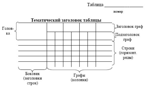 Каждая таблица может иметь тематический заголовок, отражающий ее содержание. Тематический заголовок следует выполнять строчными буквами (кроме первой прописной) через один интервал и помещать над таблицей посередине (рис. 1). Точку в конце заголовка не ставят. Основные требования к тематическому заголовку – точность, соответствие назначению и содержанию таблицы, возможная краткость.