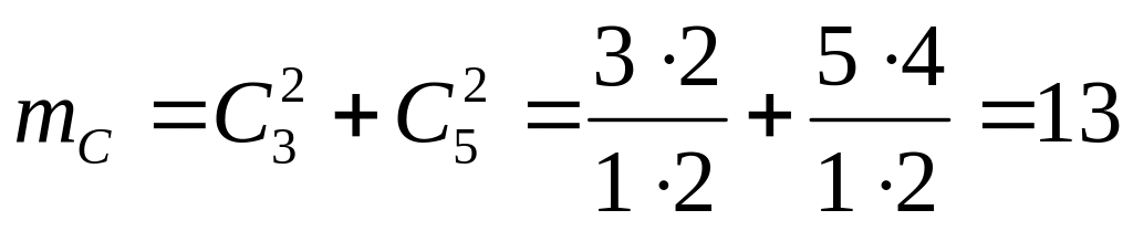 В урне 5 белых и 3 черных шара. Наугад вынимают два шара. Найти вероятности событий:
