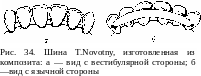 ■IMI того, временные шины, изготовленные из ли-НйЦЛ проволоки, комбинированные (с акриловыми ■швеями) или только из одной акриловой пластмас-BptT ряд существенных недостатков. Обычно они Hplf сравнительно большой объем, поскольку ак-И|1 Пластмассы не имеют достаточной прочности. ^■МвМ не обладают достаточной адгезией к твер-^■МЯМ хубов, поэтому под изготовленными из них Ив!(вшиваются остатки пищи, микроорганизмы Приводит к развитию под временной шиной, ВШ|Лк короткие сроки ее эксплуатации — 3-4 не-^^ШМПЛЬно выраженной деминерализации твер-