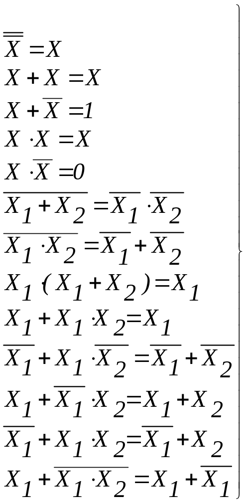 Этап 3. Упрощение логической функции и приведение её к виду, содержащему заданные логические операции. Для преобразования логической функции наиболее часто используют следующие соотношения: