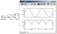 Приклад використання блоку Abs, обчислювального модулю поточного значення синусоїдального сигналу, показаний на рис.1.