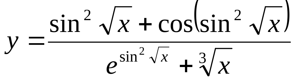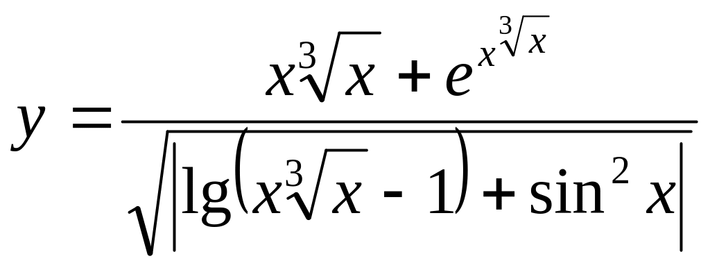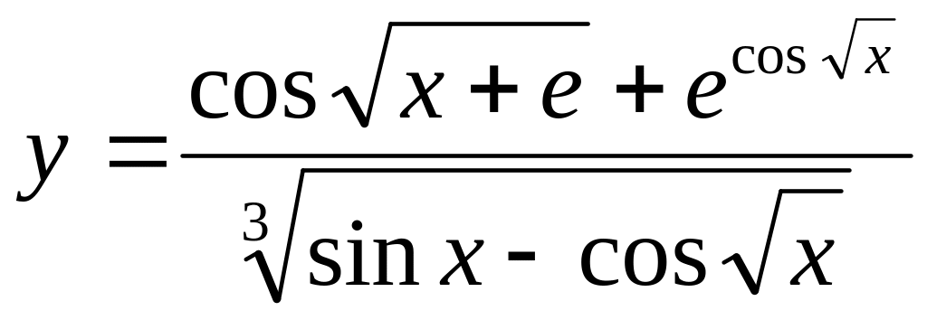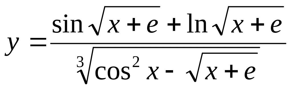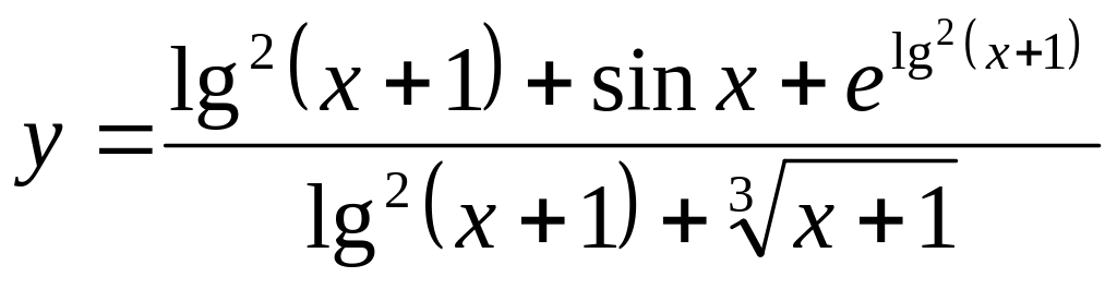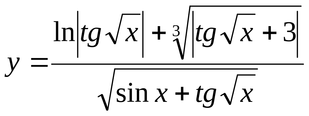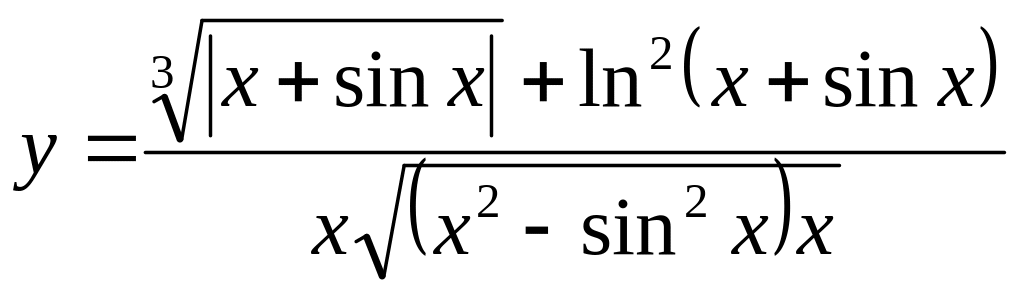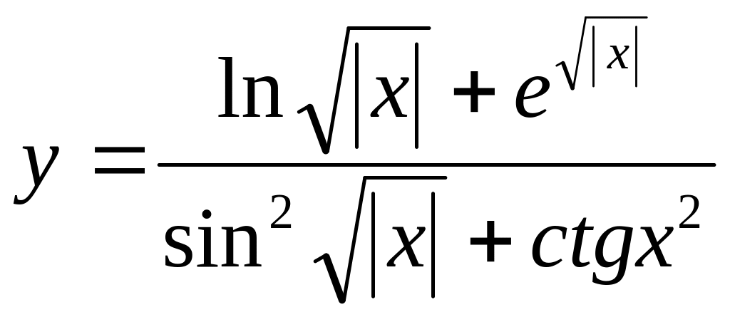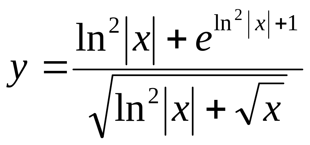 Зауваження: Забезпечити обчислення значення функції з врахуванням області її визначення, значення параметрів (a, b, c) та аргументу х підібрати самостійно.