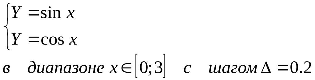 По суті, побудова двох графіків в одній системі координат є графічним рішенням системи рівнянь з двома невідомими. Їх рішенням є координати точки перетину ліній, відповідних рівнянням системи. Цей метод - наближений, точність рішення визначатиметься величиною кроку дискретизації (чим крок менший, тим точність вища).