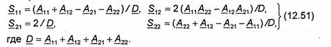 Из (12.50) и (12.42), используя (12.9), получаются формулы, связывающие элементы матриц || S| | и ||А||, для произвольного четырехполюсника: SU=(AU+A12-A2i-A22)/D,