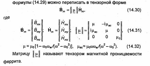 Тензор магнитной проницаемости феррита. Если в намагниченной под воздействием поля Но ферритовой среде распространяется электромагнитная волна с произвольно ориентированным вектором напряженности магнитного поля H = Hmcos(ωf), то на магнитные моменты действует суммарное поле с вектором
