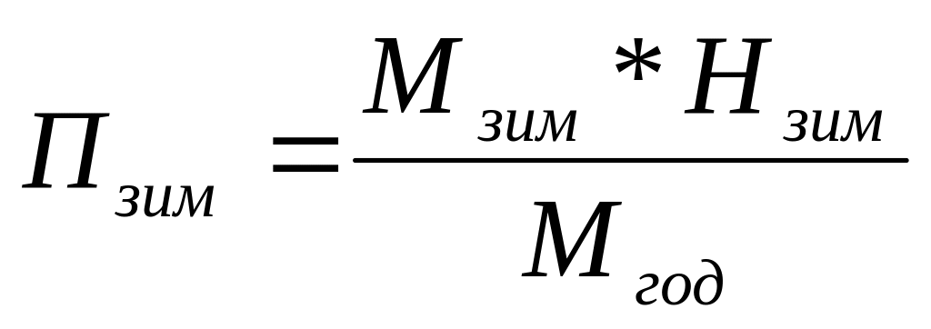 где Пзим – среднегодовой процент увеличения нормы расхода топлива в зимнее время;