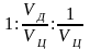 Записують співвідношення складу розчину за об’ємом Vц:Vд :Vп; Vп = 1 м3. Кожен з компонентів ділять на витрату цементу: