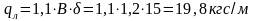 Определить погонную весовую нагрузку от конвейерной резинотканевой ленты qл, Н/м.