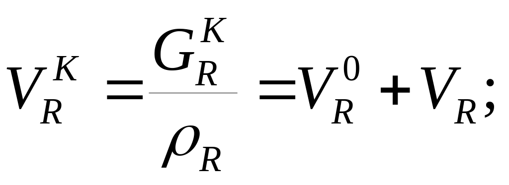 де МА, МR - молярні маси компонентів A і R; X - ступінь перетворення за компонентом А, взятим у нестачі щодо компонента В, частка; об’єм компонента А (м3) при цьому становить VAo = GAo /A, де A - питома вага компонента А, кг/м3. Вихідні маси Go і об’єм V0 усіх компонентів реакції