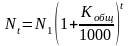 Nt – численность населения через t лет (на прогнозируемую дату);