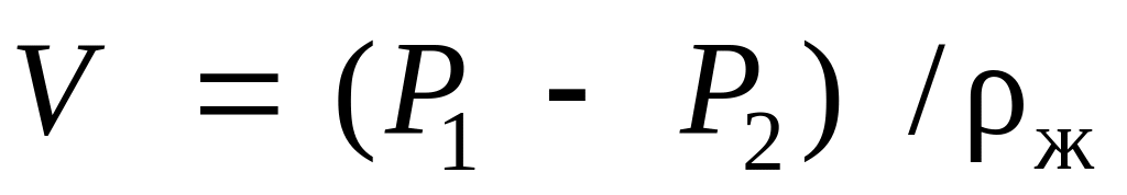Для определения массы m тела произвольной формы его взвешивают на аналитических весах с погрешностью до 0,001 г. Объём этого тела V определяют по разности двух показаний весов, к которым снизу подвешивается исследуемое тело: при взвешивании на воздухе (P1) и при взвешивании с полным погружением тела в жидкость (P2):