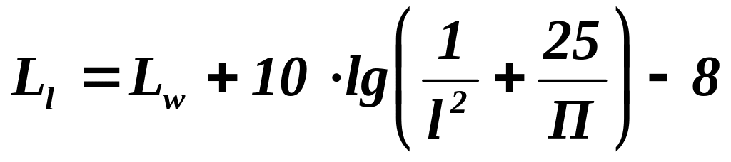 Рабочие места могут быт расположены на различных расстояниях от источника шума. Если шум распространяется только по воздуху в помещении, уровни шума на расстоянии l рассчитываются по формулам: