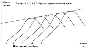 Большинство компаний производит и продает различные продукты (продуктовый портфель). Желательно, чтобы продукты продуктового портфеля находились на различных стадиях жизненного цикла (рис. 9.2.).