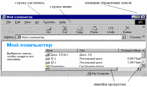 Задание 2. Распахнуть иконку «Мой компьютер» в окно, запустить приложение изучить структуру окна и способы манипуляции с ним.