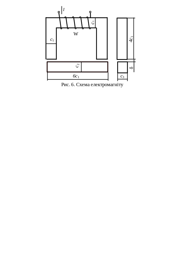 Розрахувати магніторушійну силу (МРС) та струм котушки еле-ктромагніту (рис. 6), що забезпечує створення тягового зусилля Q1 табл. 2.1. Крива намагнічування (залежність В = f(Н)) магнітопроводу задана в табл. 2.2: