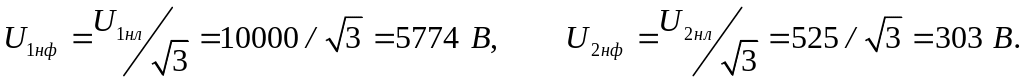 б) фазні напруги первинної та вторинної обмоток: