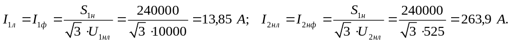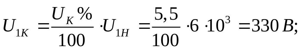 в) номінальні струми в обмотках трансформатора:
