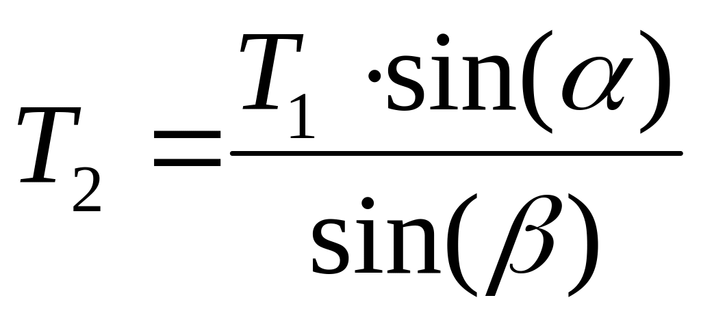 Силы натяжения нитей будут направлены вдоль нитей от узла соединения (рис.3.4б). Система сил T1, T2, P является системой сходящихся сил, т.к. линии действия сил пересекаются в точке соединения нитей. Условие равновесия данной системы: