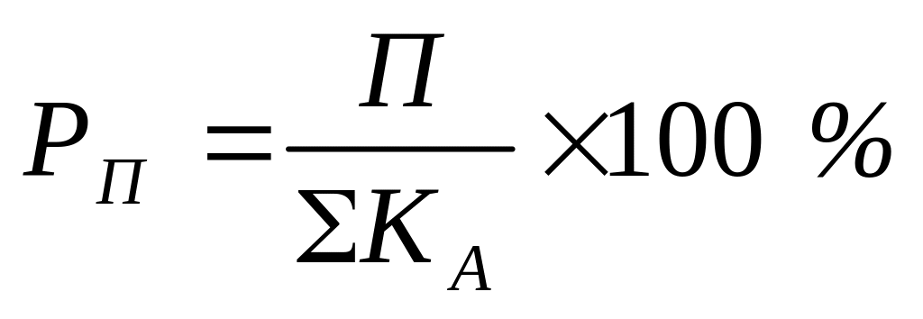де РП – рентабельність підприємства (активів), %; П – прибуток, грн.; ΣКА – середня вартість усіх активів, грн.