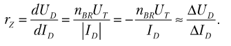 Дифференциальное сопротивление в области пробоя rZ соответствует обратной величине наклона вольтамперной характеристики.