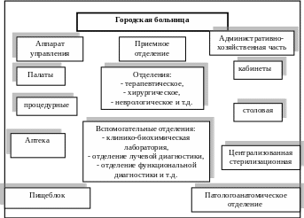 Структура городской больницы как юридического лица без включения в ее состав поликлиники представлена на схеме 2.