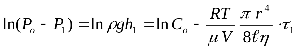 (Vτ - объём воздуха протекшего через капилляр за время τ);