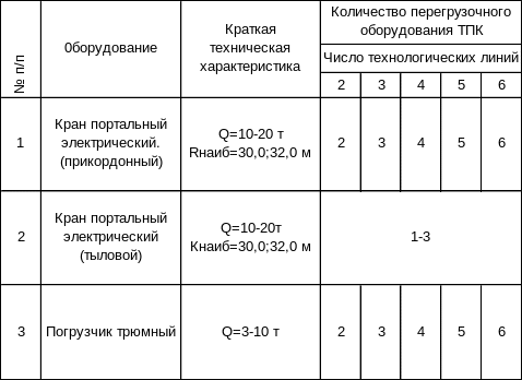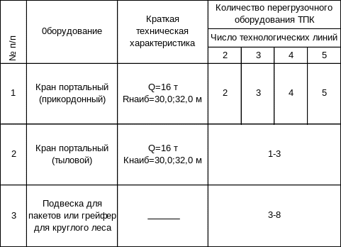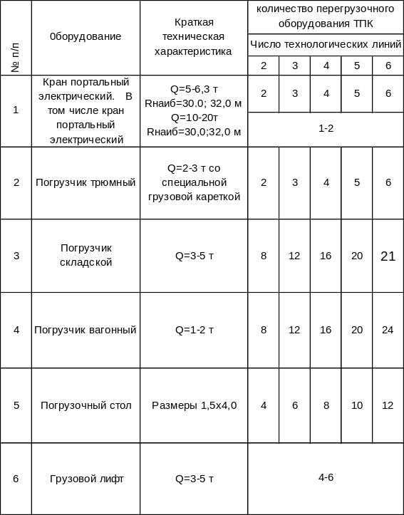 1. ПК с крановыми схе мами механизации для генеральных и навалоч- ных грузов крытого и от крытого хранения и лес- ных грузов. 2. ПК для лесных гру-зов при специали-зиро-ванных схемах механи-зации (с использовани-ем мостовых перегружа-телей и др) |