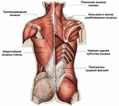 Мышцы туловища делятся на 3 группы: мышцы груди, мышцы спины и мышцы живота. Поверхностные мышцы груди участвуют в повороте плечевого пояса и приводят в движение верхние конечности. Другая группа грудных мышц, наружные и внутренние межреберные мышцы, участвуют в процессе дыхания. Самой большой грудной мышцей является диафрагма. Грудные мышцы хорошо различимы у мужчин, у женщин их практически полностью скрывают молочные железы. Мышцы спины представляют собой группу мышц поверхностных и глубоких. Поверхностные мышцы отвечают за сближение лопаток, поднятие шеи, а также принимают участие в движении верхних конечностей. Глубокие мышцы спины занимают все пространство между позвонками и углами ребер и выполняют функцию выпрямления позвоночника. Мышцы живота, образующие брюшной пресс, являются совокупностью косых прямых и внутренних, и поперечной и прямой мышц. Мышцы выполняют защитную функцию живота. Они участвуют в движении и защитных реакциях (кашель, чихание), а также в дыхании, опорожнении кишечника и родах.