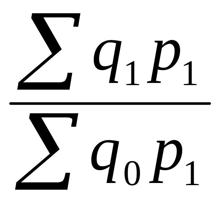 Поскольку, в числителе формулы 3 содержится сумма стоимости реализации товаров в текущем периоде по неизменным (базисным) ценам, а в знаменателе — сумма фактической стоимости товаров, реализованных в базисном периоде в тех же неизменных (базисных) ценах, то данный индекс является агрегатным индексом товарооборота в сопоставимых (базисных) ценах.