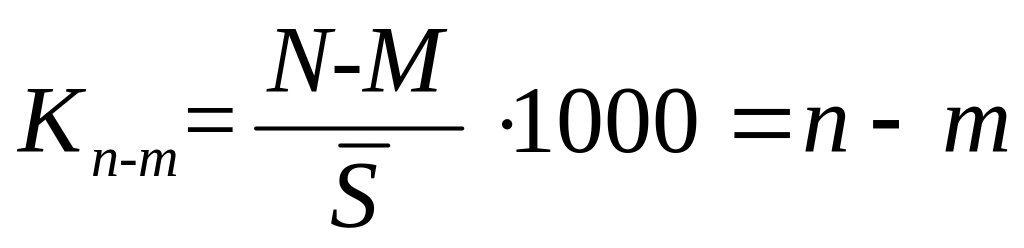 Этот коэффициент показывает, на сколько в среднем человек увеличивается каждая 1000 среднегодового населения за счёт превышения рождаемости над смертностью. Если n<m, то имеется естественная убыль населения, которая дает сигнал о том, что в населении наступил период его суженного воспроизводства.