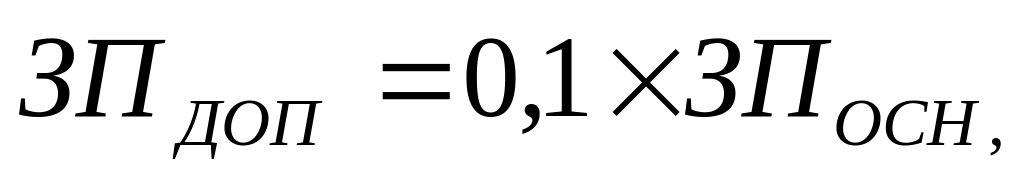плата мастерам и бригадирам, простой по вине предприятия и т.д. Дополнительная заработная плата составляет 10% от заработной платы основной.