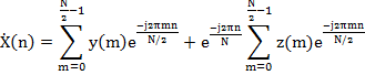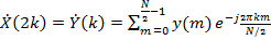 2. ДПФ последовательности дает спектральные отсчеты с четными номерами, ДПФ последовательности -- с нечетными: