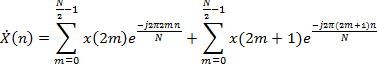 Пусть N – четное число. Выделим из формулы ДПФ 2 слагаемых, соответствующих элементам исходной последовательности с четными и нечетными номерами: