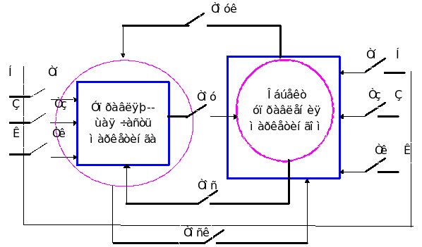 Информационная модель управления юридического процесса может быть представлена в виде 2 сопряженных, конфликтующих подсистем: юриста и клиента через которые проходят информационные потоки нормативных данных о юридических событиях в течение временного интервала с периодичностью Тн, потоки заданий на разрешение проблемной ситуации с периодичностью заданий Тз, потоки критериев, оценивающих информационные условия разрешения проблемной ситуации, изменяемые с периодичностью Тк (рис.1.2.).