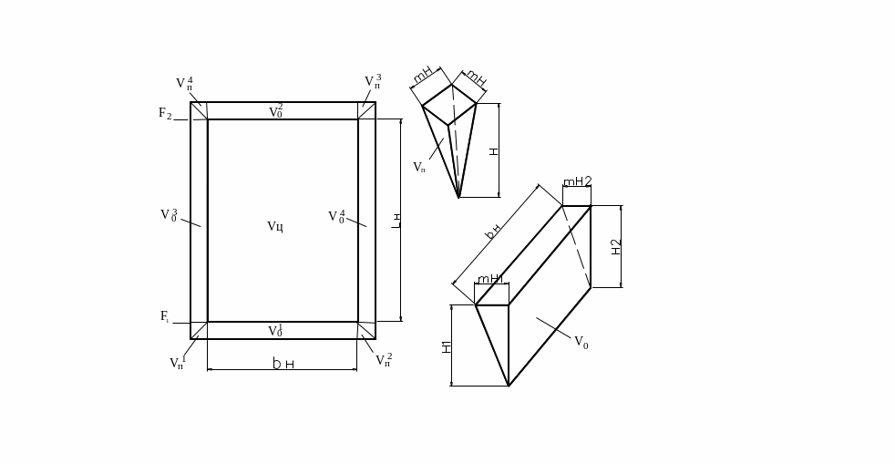 Объем пирамид (Vп1, Vп2, Vп3, Vп4), расположенных по углам котлована (рис.10)
